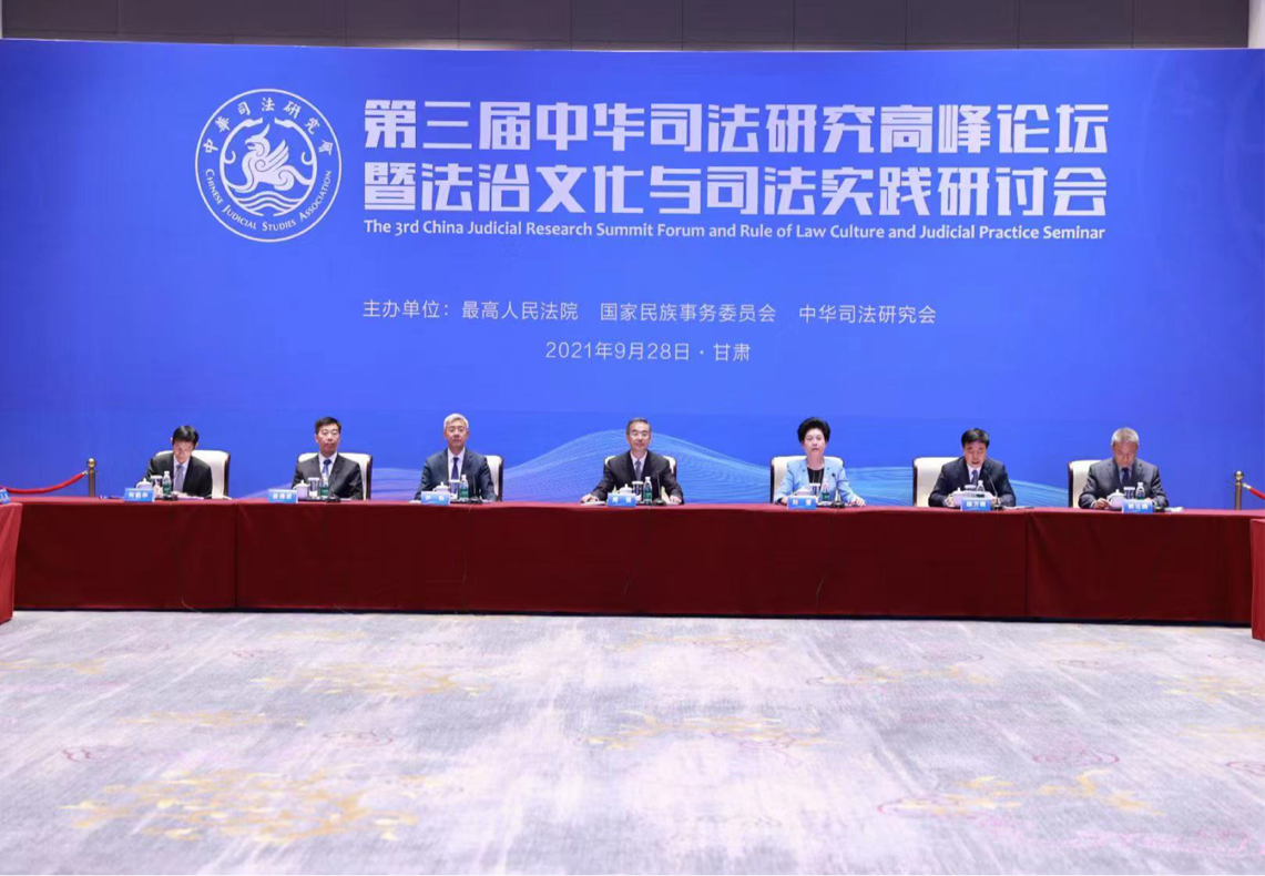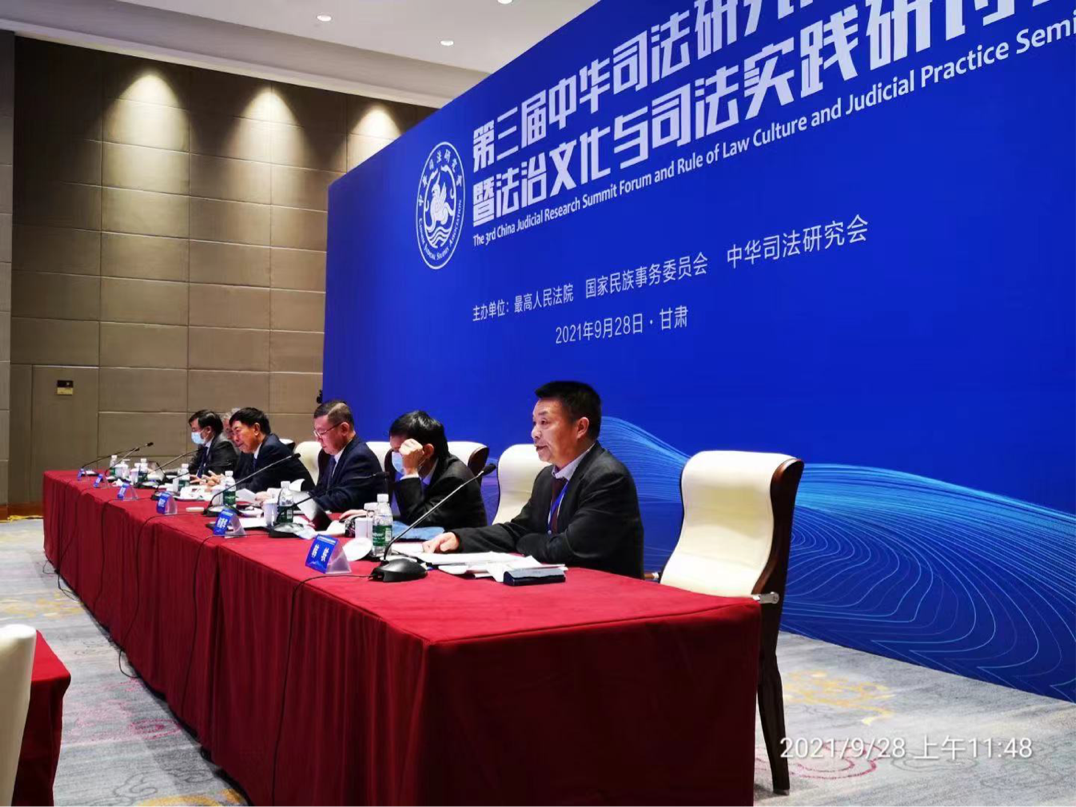 9月28日,由最高人民法院、国家民族事务委员会和中华司法研究会共同主办的第三届中华司法研究高峰论坛暨法治文化与司法实践研讨会在甘肃敦煌国际会展中心举行。最高人民法院院长周强、国家民族事务委员会副主任刘慧、甘肃省委书记尹弘出席开幕式并致辞。我院韩轶院长应邀在作主旨演讲,并在闭幕式上作学术总结发言。