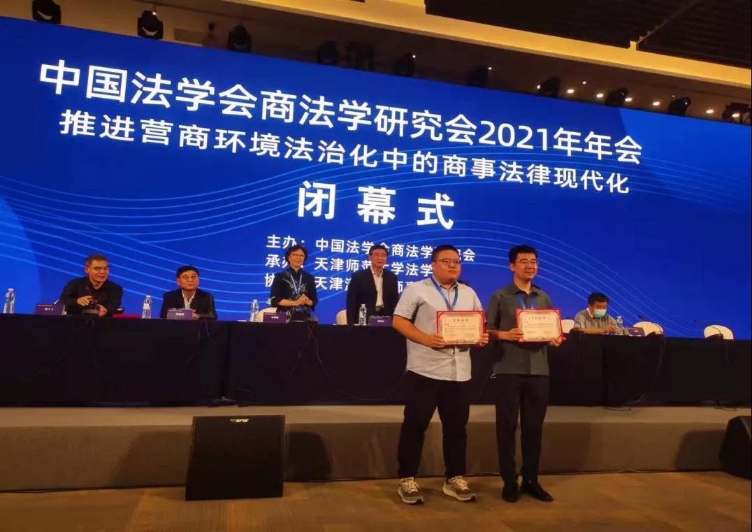 2021年9月20日,中国法学会商法学研究会2021年年会在天津举行隆重的颁奖典礼。我院薛前强老师《女性主义公司法:一个初步的体系化理解》一文荣获第四届“王保树商法学优秀博士论文奖”。