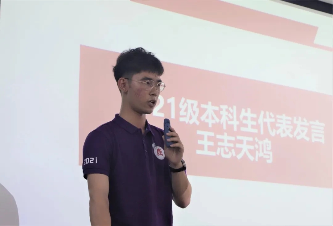 大家下午好!我是2021级新生,来自法学二班的王志天鸿,毕业于哈尔滨市第三中学校。非常荣幸能够作为21级本科生新生代表在这里发言,和大家一同分享我的喜悦和感受。