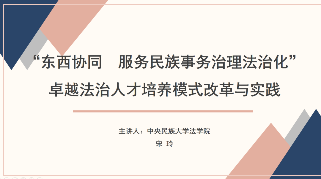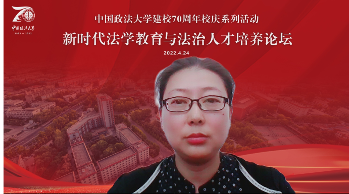 受中国政法大学的邀请,威廉希尔中文官网副院长宋玲教授参加2022年4月24日举办的《新时代法学教育与法治人才培养论坛》。论坛由中国政法大学主办,来自教育部高等教育司、北京大学、清华大学、中国人民大学、武汉大学、吉林大学等单位近60位领导和专家参加了论坛。宋玲教授做了《“东西协同 服务民族事务治理法治化”卓越法治人才培养模式改革与实践》的发言。详细介绍了我院人才培养的特色和理念。