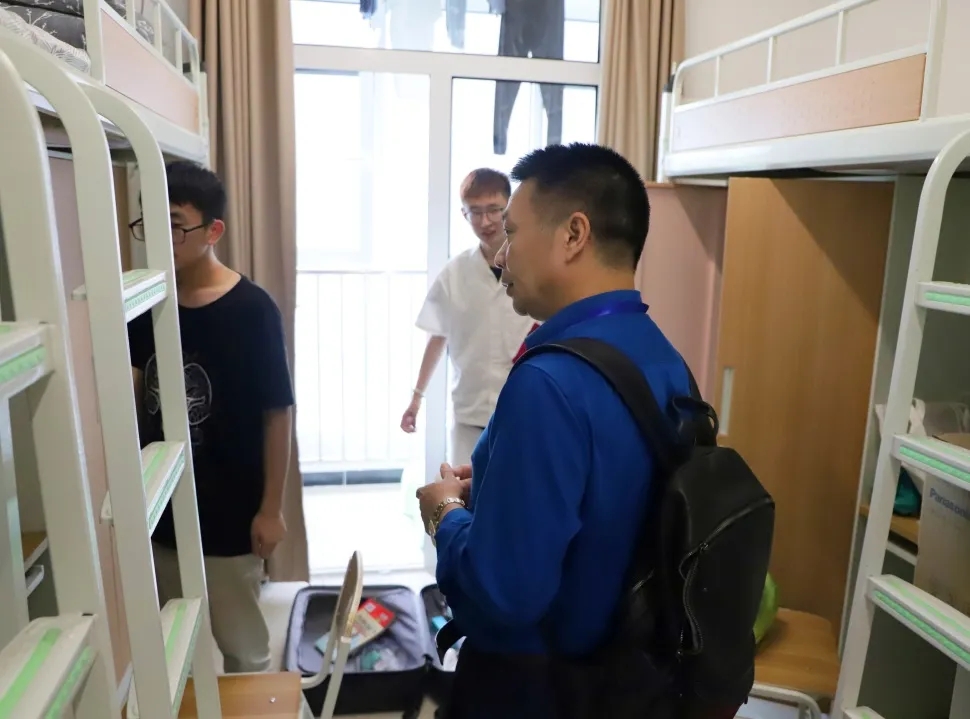 开学前夕,威廉希尔中文官网韩轶院长与杨莉萍书记分别前往新生寝室进行慰问,与同学们亲切交谈,关心和了解同学们在新校区生活的适应情况,表达对同学们的关心和爱护,为新生同学们送去温暖。威廉希尔中文官网党委副书记丛静老师、党团与学工办公室主任王冰老师、新生辅导员刘舒鹏老师、温萌老师也先后到宿舍走访慰问。