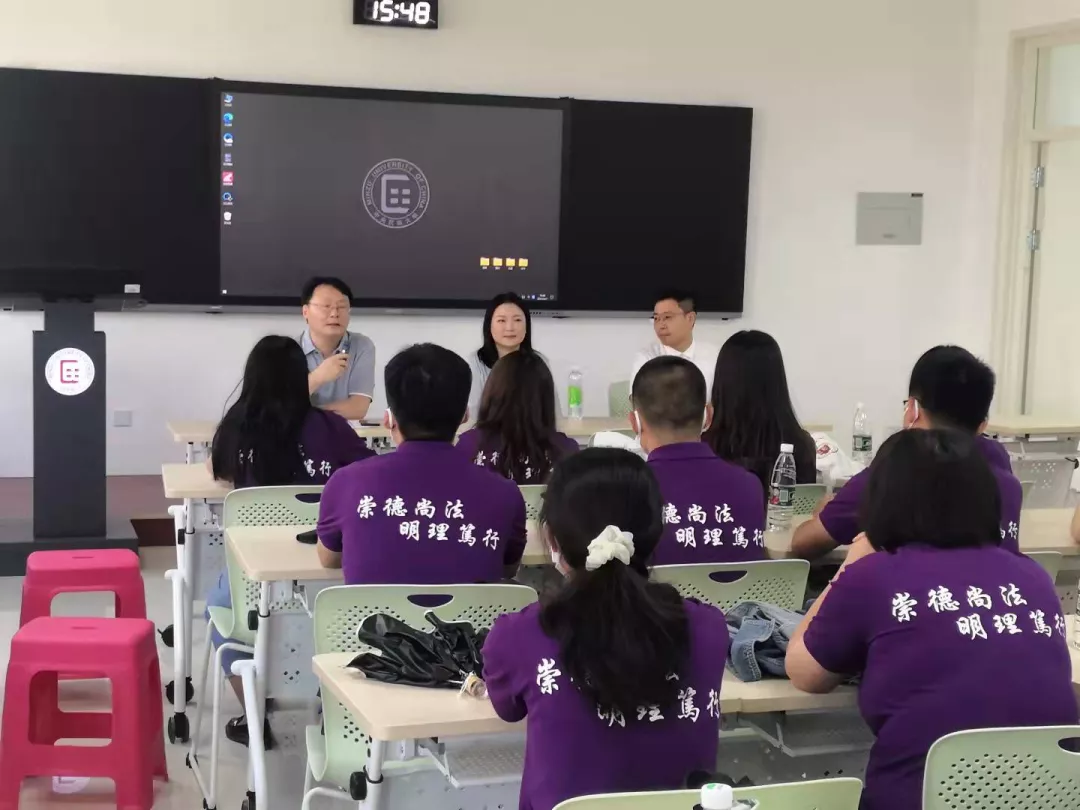 2021年9月17日下午,中央民族大学威廉希尔中文官网2021级本科和研究生各班在丰台校区顺利召开班会。本科生法学1班班主任韩轶、李秀鹏老师、法学2班班主任张群、王帅老师、法学3班班主任宋玲、卢桂老师、民族实验班班主任徐爽老师,以及研究生导师陆平辉、段威、黄秋丰、邹龙妹、陈群峰、郑毅、王一超、范依畴老师,新生辅导员王宇坤、刘舒鹏、温萌老师,分别为2021级本科和研究生各班组织召开了新学期的第一次班级会议。威廉希尔中文官网党委书记杨莉萍、党委副书记丛静参会。