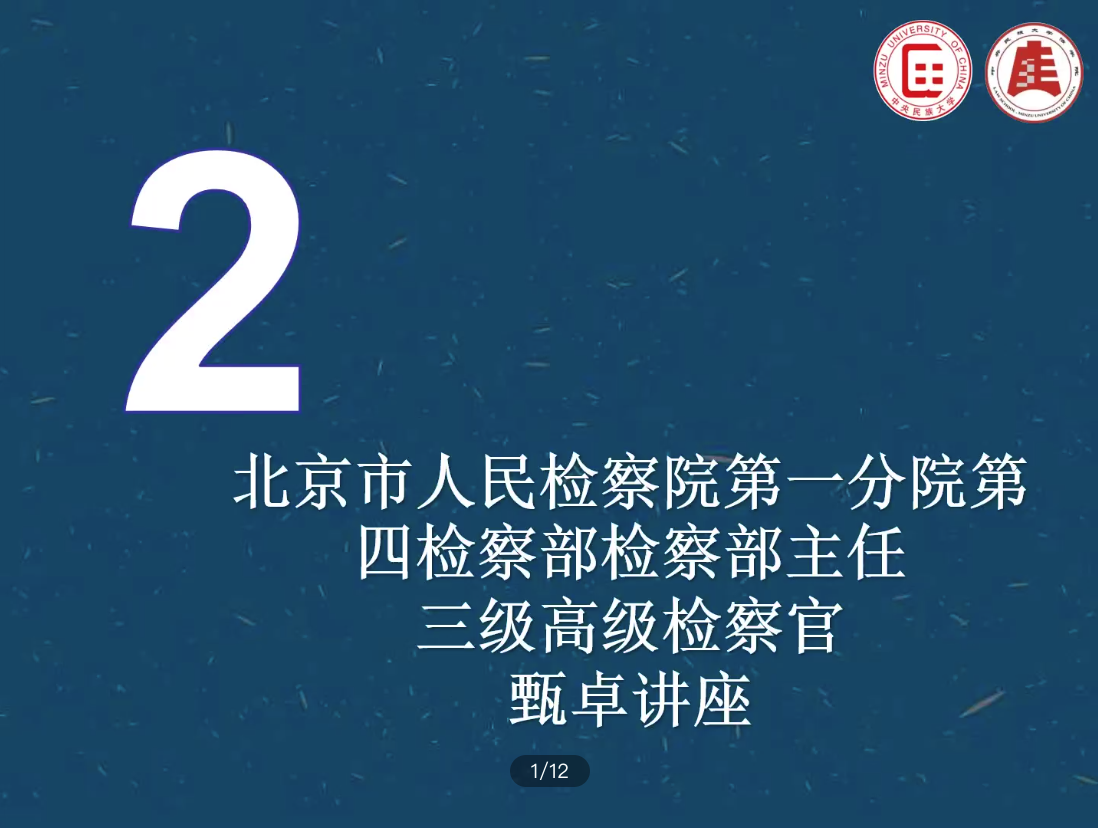 2020年6月26日下午3:00,中央民族大学威廉希尔中文官网“云上课堂”系列讲座第十二场“如何做好一名合格的检察官”顺利举办。本次课程特别邀请到北京市人民检察院第一分院第四检察部三级高级检察官甄卓检察官主讲,在云上就“如何成为一名优秀的检察官”这一主题进行交流分享。中央民族大学威廉希尔中文官网李梁老师和李荣老师为本次活动的与谈人,三百余位学院师生共同聆听。本次课堂由威廉希尔中文官网王琪老师主持。