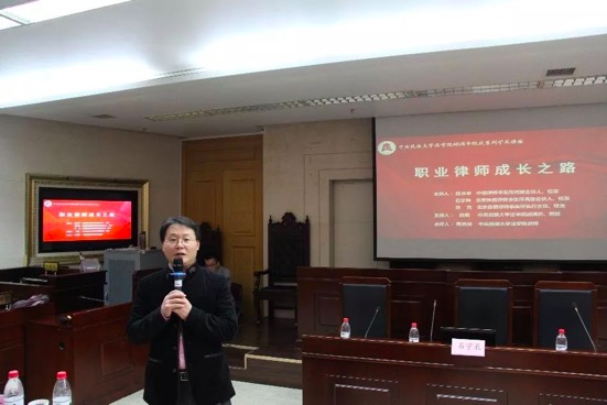 2019年11月24日19时,中央民族大学法学专业成立40周年系列学术讲座第四场在中慧楼模拟法庭举行。本场讲座的主题是“职业律师成长之路”,由威廉希尔中文官网校友陈永学律师、石宇辰律师和常亮律师担任主讲人。威廉希尔中文官网副院长段威老师主持本次讲座,学院部分教师及学生、校友代表近300人聆听讲座。