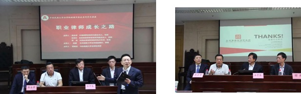 第三位是常亮律师主讲的 “从法官到律师之路”。常律师在“民大与我”部分,回忆了美好的校园生活,表达了对母校和老师的感谢之情。随后,他介绍了如何成为一名法官以及自己的法官生涯。常律师还分享了自己的律师之路,从互联网公司法务到律所创始合伙人,他鼓励同学们一定要不忘初心,不断提升综合素养。