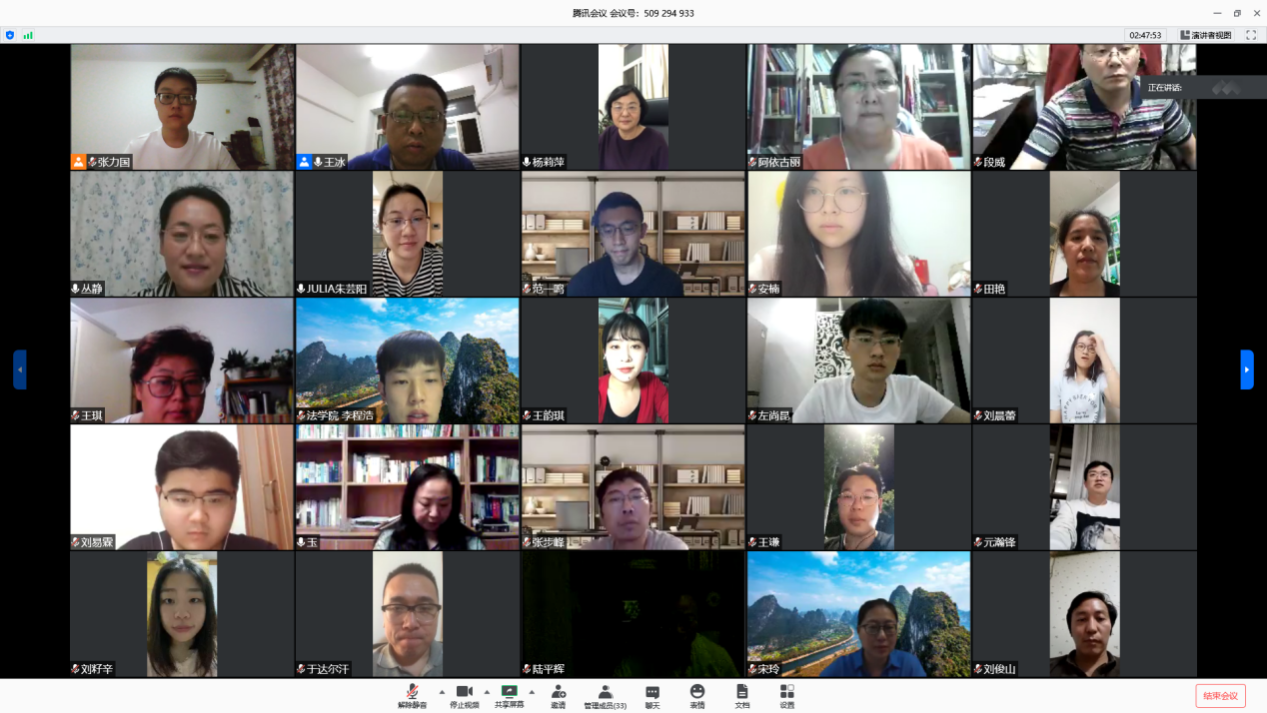 为进一步贯彻落实中央民族大学师德师风建设年的相关要求,认真学习2020年“两会”精神,2020年5月29日晚7:30,威廉希尔中文官网党委理论学习中心组(扩大)学习会通过腾讯会议在线召开,威廉希尔中文官网全体党委委员、党支部书记、团委书记、 教授委员会委员、教研室主任、学科带头人、两办主任等30多人参会。学习会由威廉希尔中文官网党委副书记丛静主持。