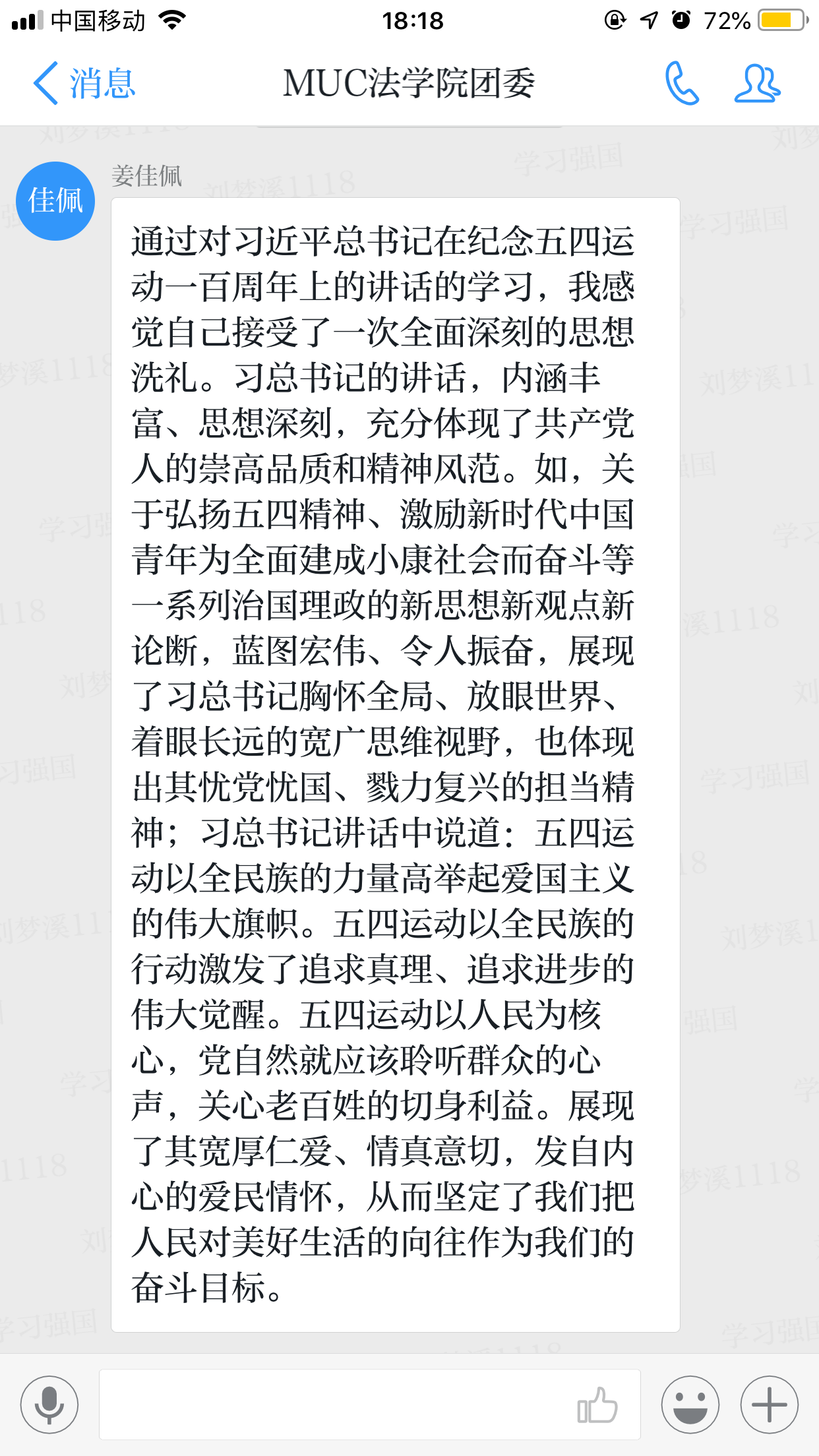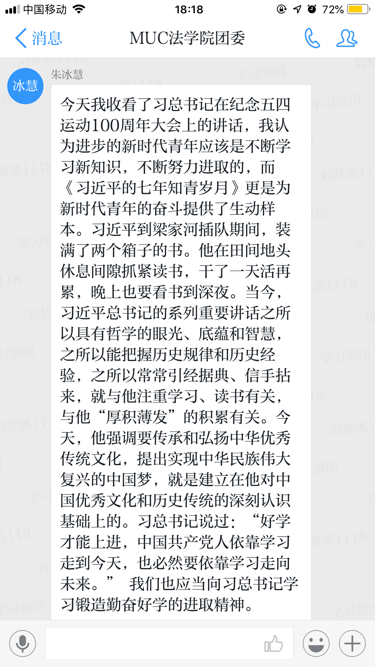 除了线下学习交流的方式,威廉希尔中文官网团委委员还利用学习强国app的学习群组进行讨论交流。